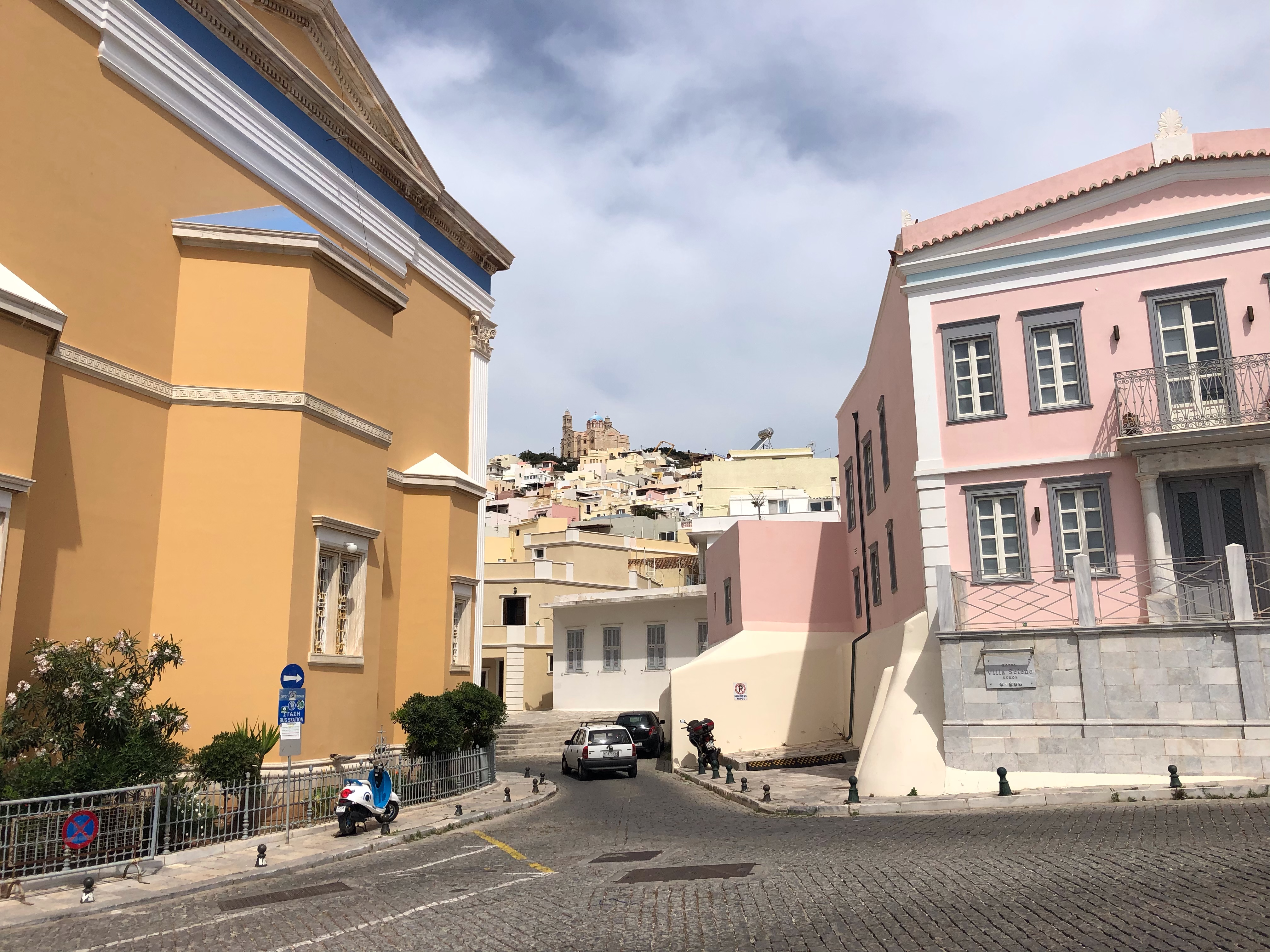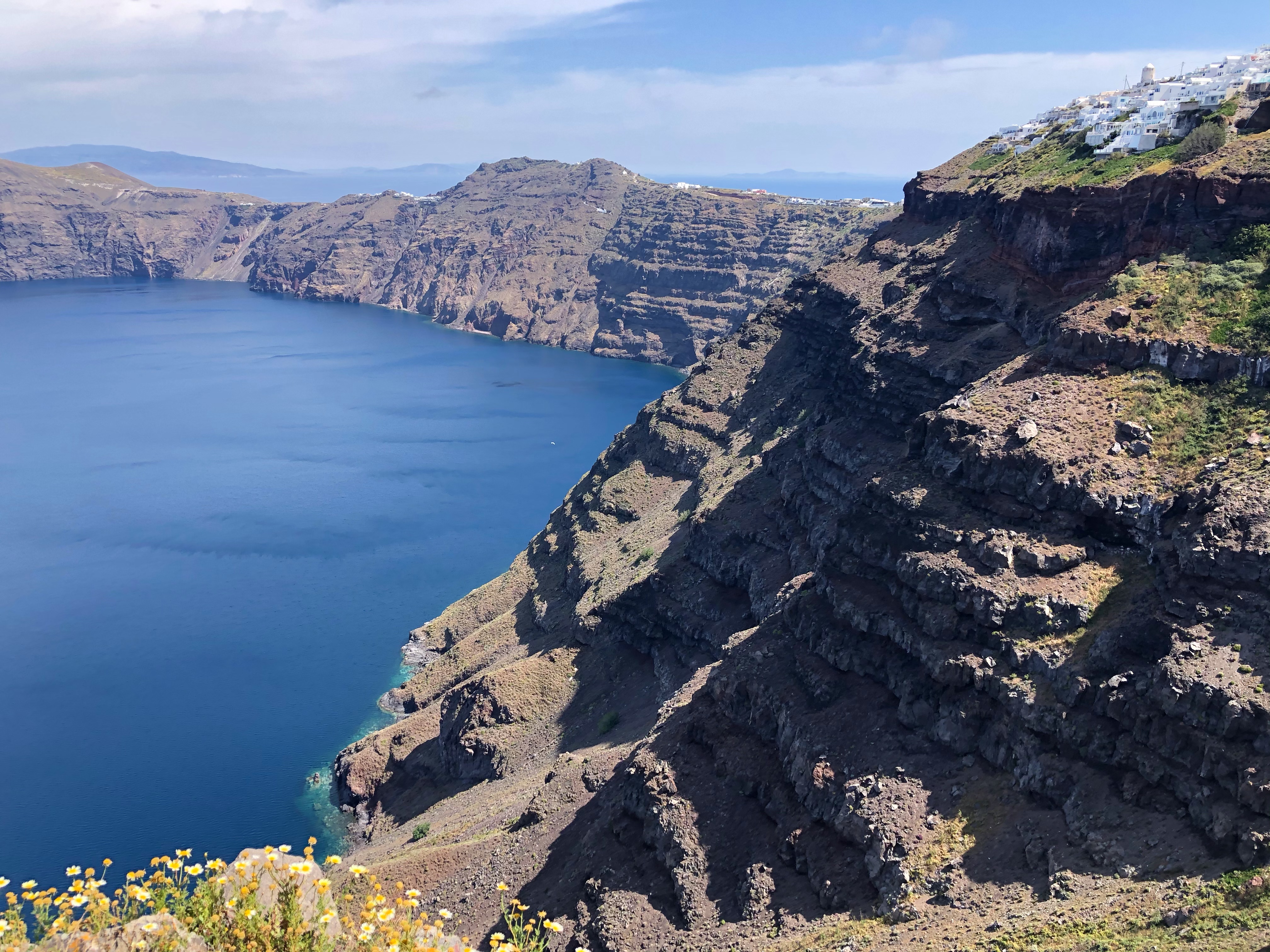 And one of my favourite moments of the whole trip happened on Santorini. Ali likes to remind me of that but I contend that this could have happened in any Greek village anywhere. Let me explain. It is possible to escape the crowds, souvenir shops, overpriced restaurants, traffic, mistreated donkeys etc. on Santorini if you rent a scooter and seek out a few of the small villages where some semblance of traditional Greek life actually still goes on. Well, whilst in one of these villages on a Sunday morning we found the locals at church, with a marching band waiting outside. We wandered up to the top of the hill where another whitewashed blue domed church stood that you could actually stand on top of, which we did, on our own. And then the church bells of the other two churches in the village started up (there are more churches than you can poke a stick at, and blue domes abound). We stood there, no tourists, no selfie sticks, it was beautiful. When the bells stopped and we came down the locals were all outside their church sharing food and drinking wine. Beautiful.