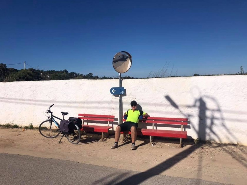 This was probably the best days cycling we had. Beautiful beaches and lovely little towns and the cycle route was actually clearly marked along this section. We ended the day’s cycling around lunchtime in a beautiful place called Tavira. We had a wonderful lunch of bread, cheese and Portuguese sausage all washed down with a bottle of rose and spent the rest of the day wandering around this beautiful little town.