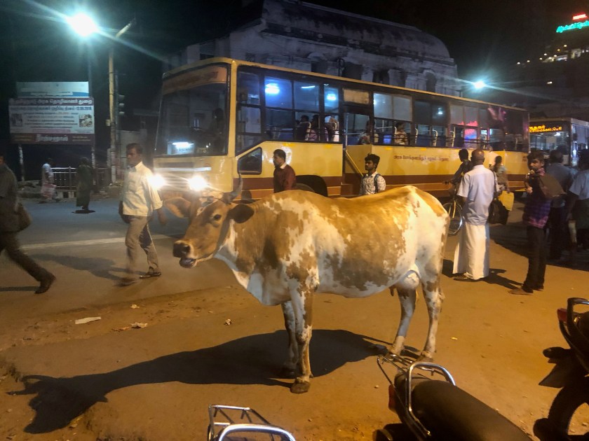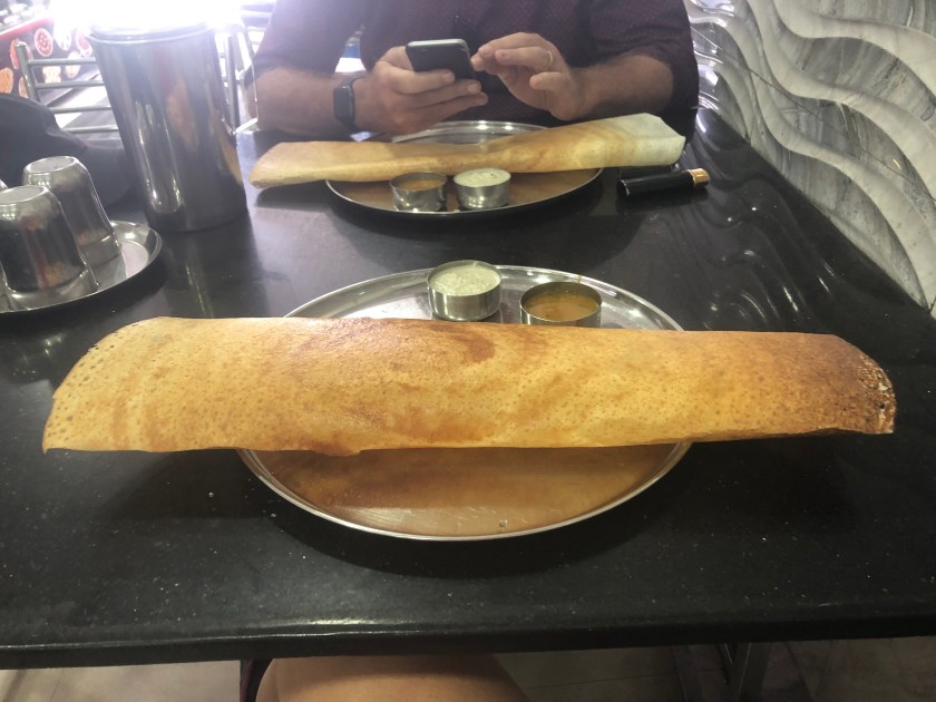 Just had breakfast and a second cup of chai now. Chilli omelette from me and Ali had some iddlys and a vada with curry sauce. Not as good as dinner but for less than $1.00 each you can’t expect gourmet. We have gone vego whilst in southern India. Not for any noble reason really but simply because vegetarian food here is more abundant, tastier, safer and cheaper, and I always believe that eating like the locals do is the way to go when travelling.
