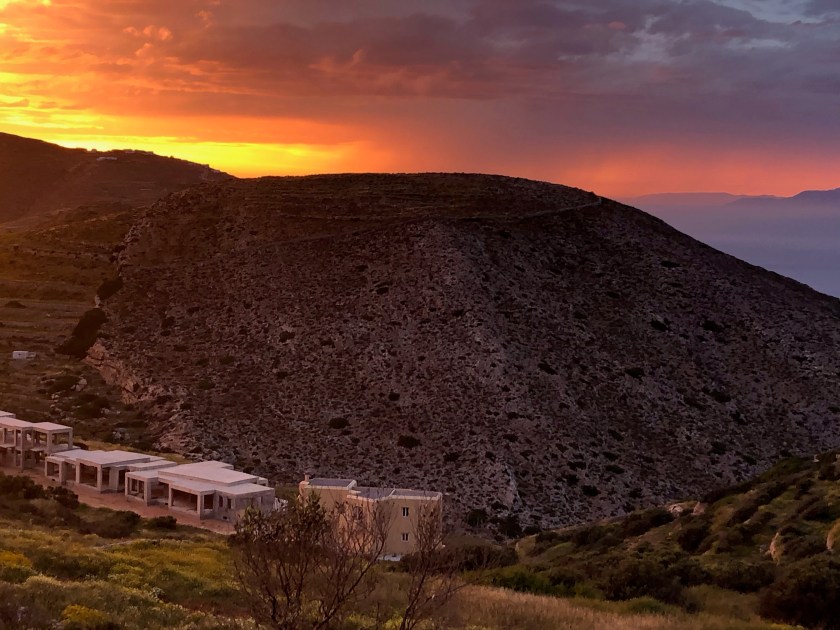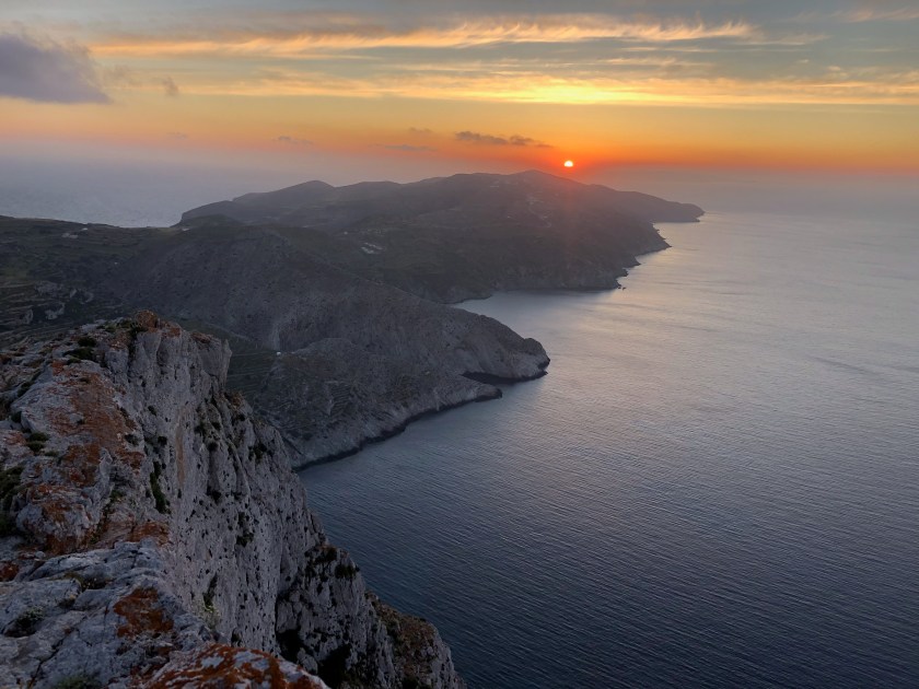 Folegandros is only about 15ks from end to end and about 1k wide. One road, one bus, a population of around 700, a small port town with a handful of tavernas and a main town 3ks up the road with a couple of shops and a few more restaurants. It was absolute bliss. And watching the sunset from the monastery on the top of the hill was every bit as good as a Santorini sunset, but minus the selfie sticks.