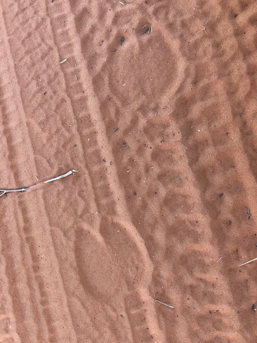 What can I tell you about the desert itself, other than if you ever get the chance you really night to spend a night out there to get it. It is awesome. The sky, the sunset, the stars and the sense of isolation is just ‘wow’. We didn’t actually see any dingos or camels out there but we did see plenty of evidence of them in terms of foot prints. Probably glad not to see any dingos once we were camped but I would have loved to have seen a camel or two.
