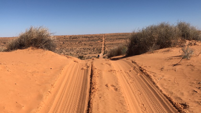 Coming from the west, the only option is to cross the Simpson Desert. No road as such, just a four wheel drive track that crosses over 1,000 sand dunes in just over 500ks. If you are heading west and want to get to Perth, keep going for another 2,000ks at the last sand dune.