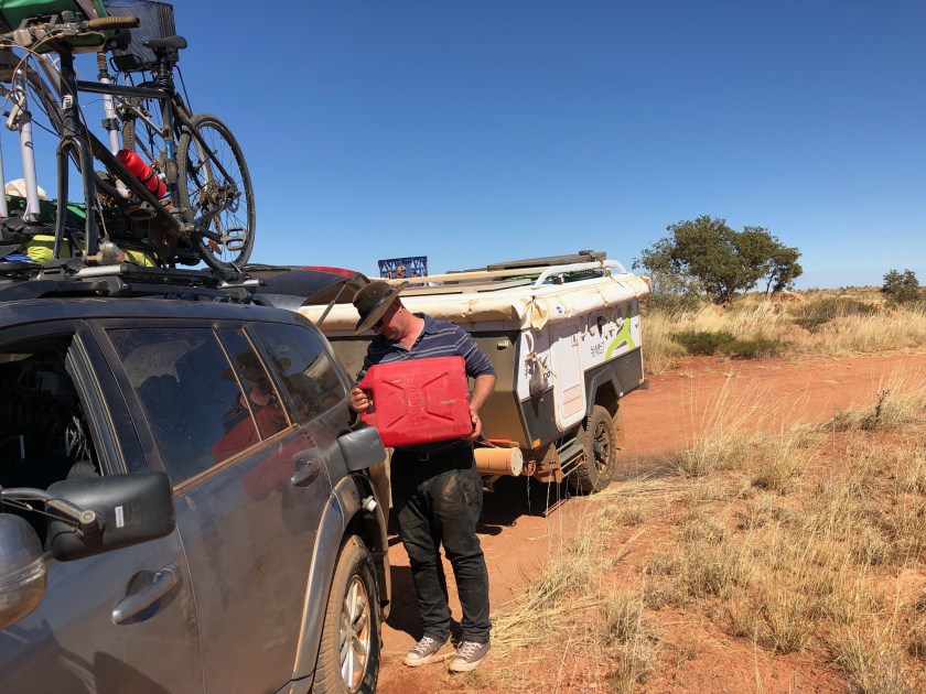 The Birdsville track isn’t quite the challenge that it used to be, but it does still do its best to destroy windscreens, tyres and caravans whenever possible. Fifty years or so ago it still took almost a couple of weeks to drive from Marree to Birdsville but these days you can drive it in a day or two. We weren’t in a rush so we did it with a couple of overnight camps along the way, and the only damage sustained was a stone smashing a pipe coming out of the water tank under the van. Didn’t notice it until we set up camp and found we had no water! Nothing a bit of glue and tape couldn’t fix though and fortunately we camped at a place that had water to refill the tank with. In fact one of our stops was by a bore where water from the Great Artesian Basin comes out hot enough for a nice relaxing spa in the thoughtfully provided plastic pool, and afterwards for a hot shower in the equally thoughtfully provided tin shed.