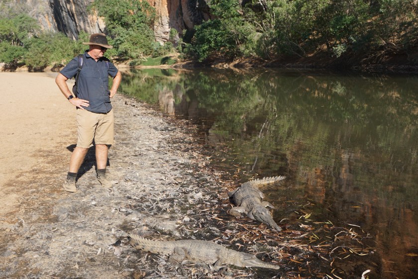One of the most interesting paintings that seems to appear all over the Kimberly is the Wandjina. These spirit beings started appearing around 4,000 years ago and were apparently repainted over the top of the original every decade or so. The Wandjina are painted with a round white face, big round eyes, what appears to be a halo or helmet of some kind and a nose but no mouth. The story that goes with them is that they came down from the sky and shaped the land and the rivers and looked after the people. Apparently they realised this was a pretty big job so they sent for reinforcements and more of them arrived later. When they left, some went back into the sky and some went into the earth and live at the source of natural springs.