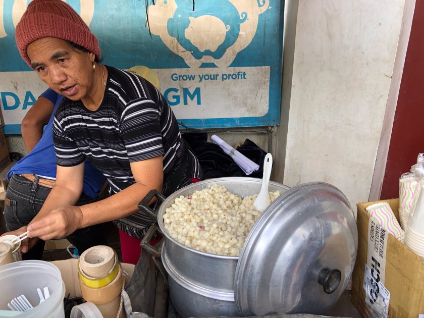 Another item worth a mention is binatog. This is basically boiled corn served with coconut, sugar and condensed milk poured over it. This is delicious.