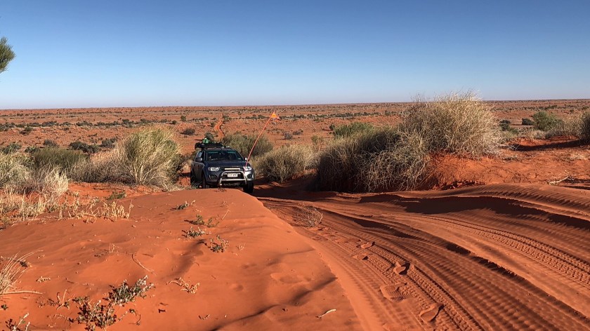 As mentioned previously, Birdsville sits in the South West corner of Queensland, very close to where Queensland, South Australia and the Northern Territory all meet at Poeppel corner. Now visiting Poeppel corner has been on my bucket list for a while now after getting to know a bit more about it on my previous Birdsville visits. Only problem is it lies 170ks west of Birdsville which, if you have been paying attention, will realise is somewhere in the middle of the desert. In fact, 150 sand dunes in to be precise. So this time we came prepared for a trip into the desert before the Bash started. Even with a two way radio, Emergency locator beacon, plenty of spare water, food and fuel though, there is still a slight concern that things could go wrong. Even the best RACQ cover isn’t going to help out there and vehicle recovery is very expensive. Clutch failure would be extremely awkward.