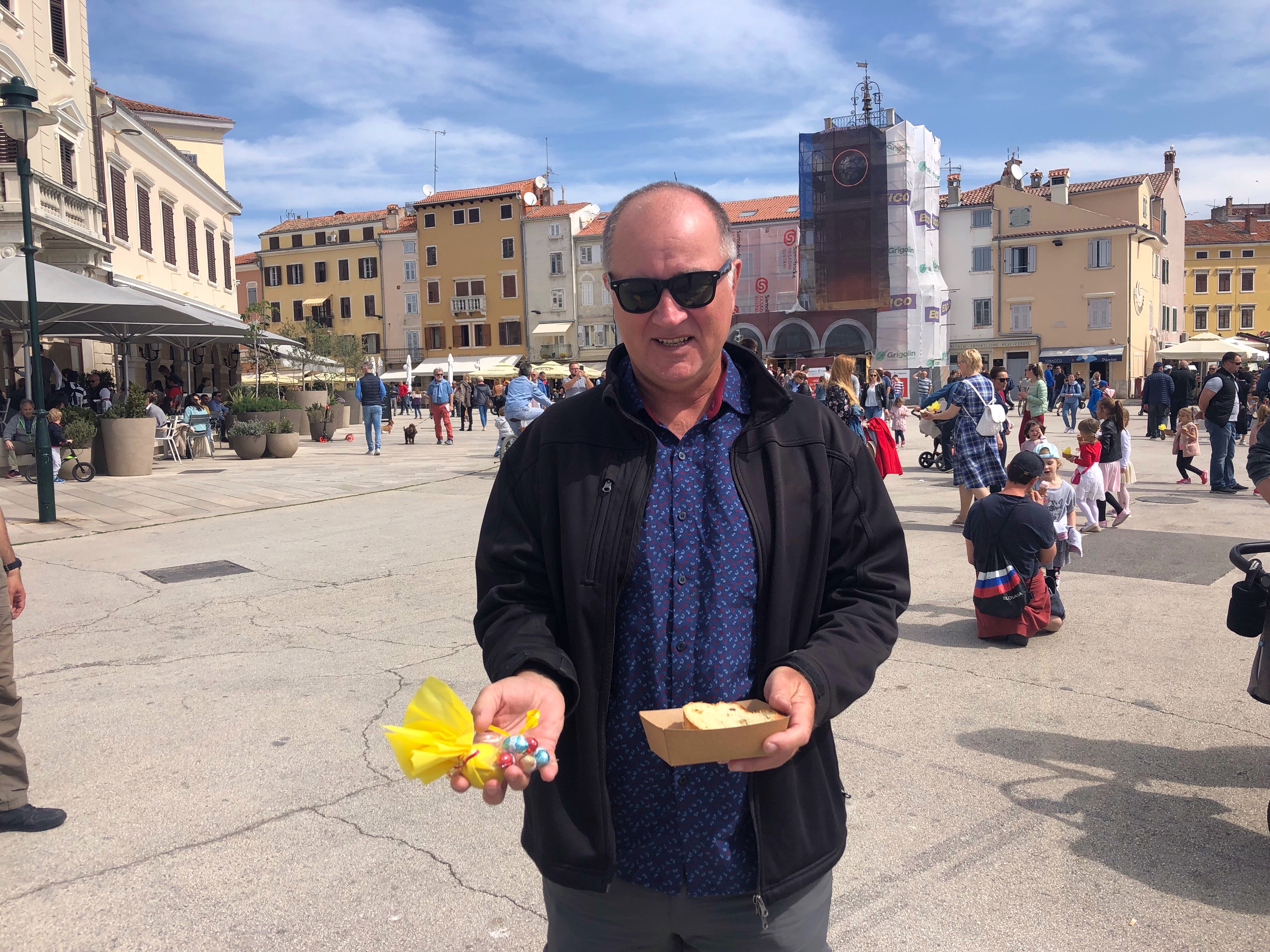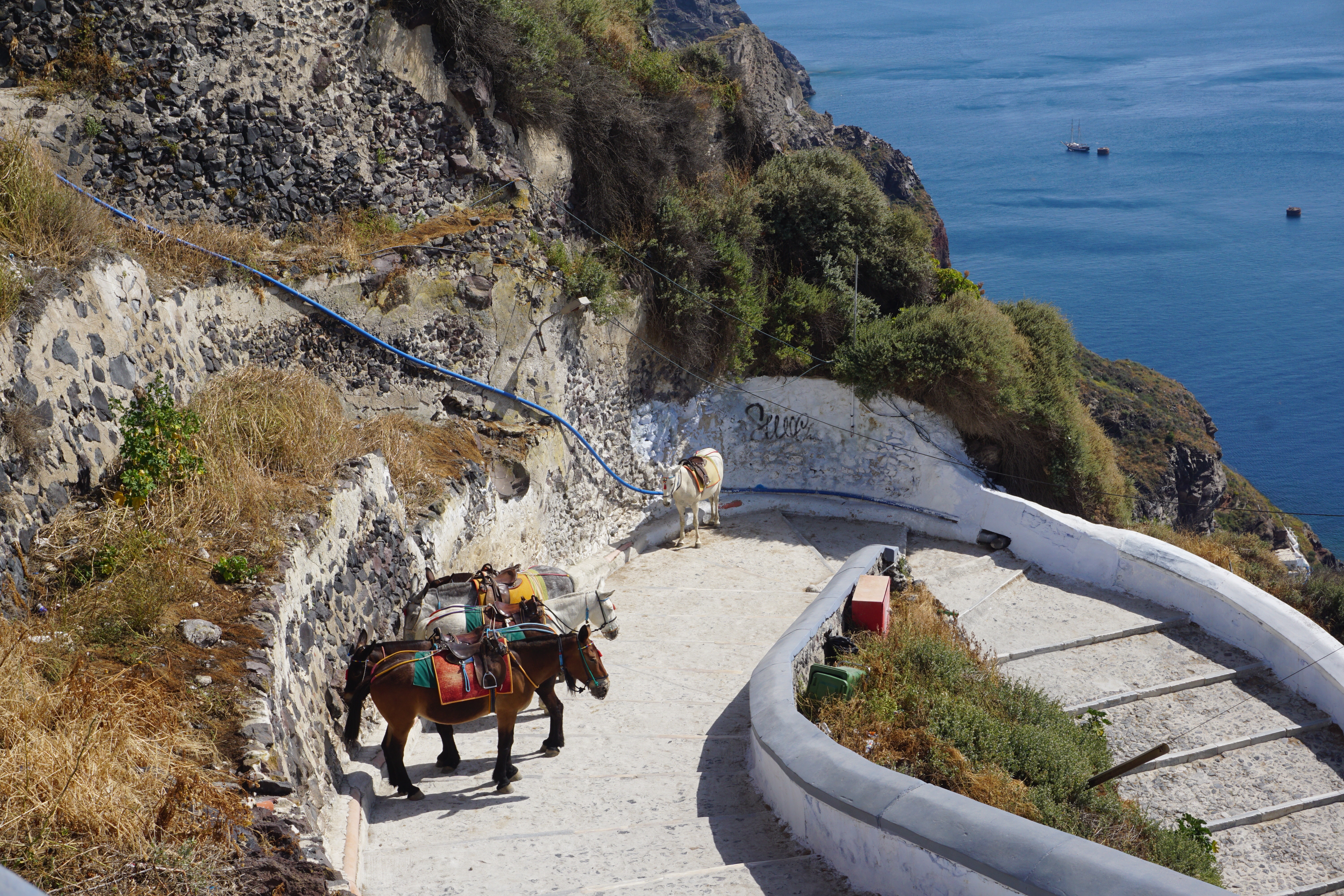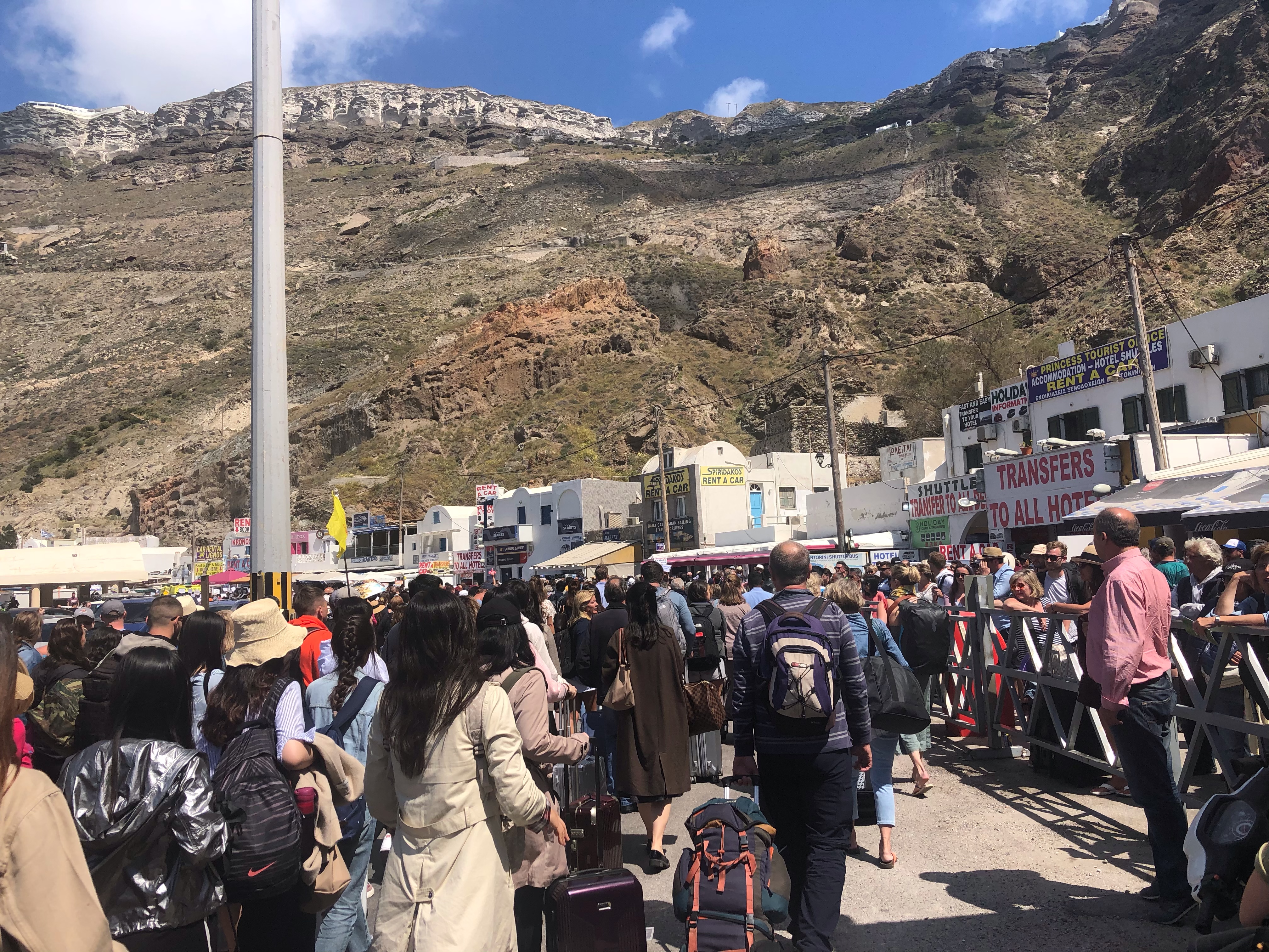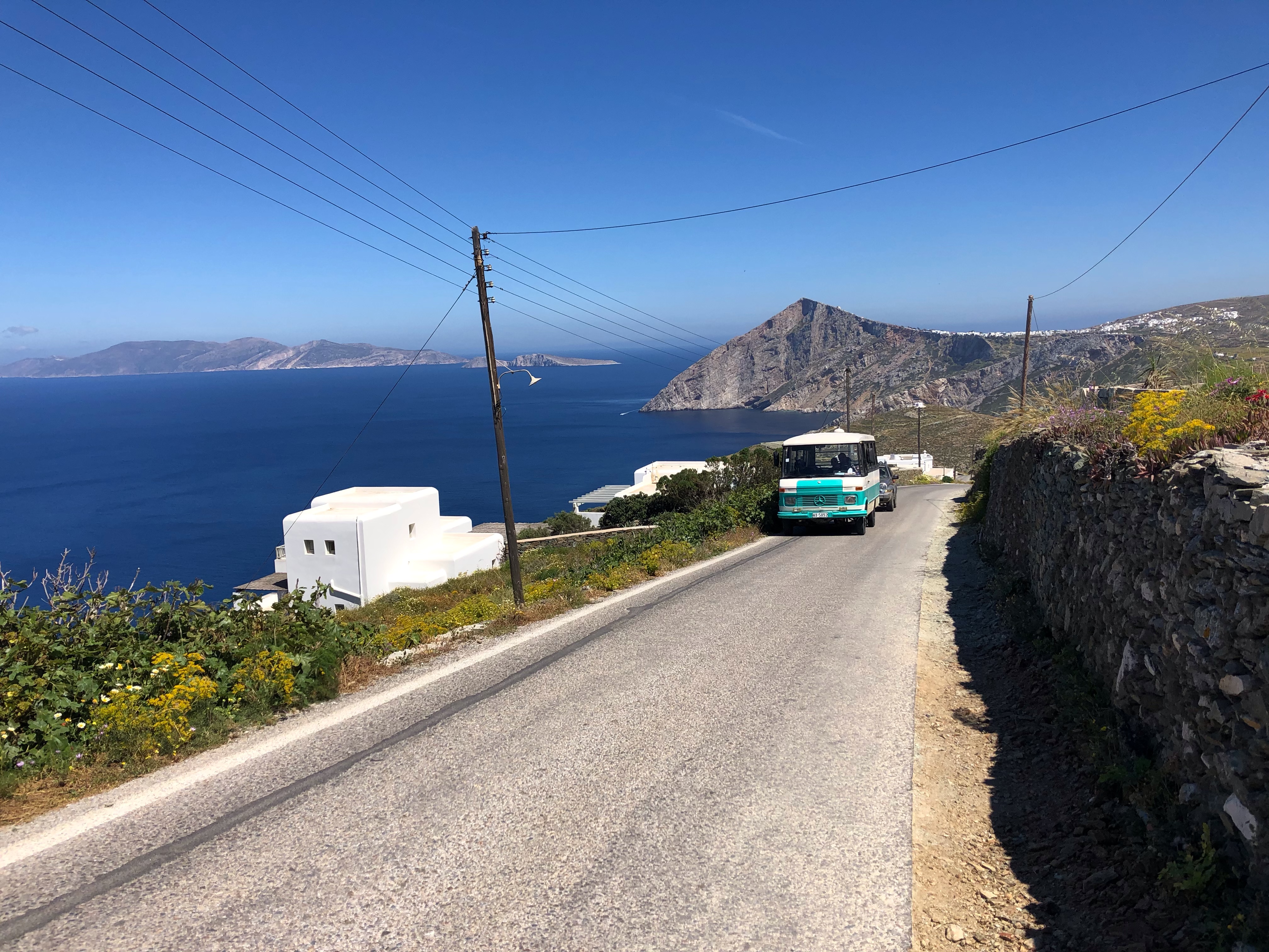 And one of my favourite moments of the whole trip happened on Santorini. Ali likes to remind me of that but I contend that this could have happened in any Greek village anywhere. Let me explain. It is possible to escape the crowds, souvenir shops, overpriced restaurants, traffic, mistreated donkeys etc. on Santorini if you rent a scooter and seek out a few of the small villages where some semblance of traditional Greek life actually still goes on. Well, whilst in one of these villages on a Sunday morning we found the locals at church, with a marching band waiting outside. We wandered up to the top of the hill where another whitewashed blue domed church stood that you could actually stand on top of, which we did, on our own. And then the church bells of the other two churches in the village started up (there are more churches than you can poke a stick at, and blue domes abound). We stood there, no tourists, no selfie sticks, it was beautiful. When the bells stopped and we came down the locals were all outside their church sharing food and drinking wine. Beautiful.